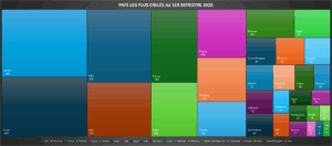 Figure 4 – Pays les plus touchés par des cyberattaques au premier semestre 2025 (source des données hackmanac) (cliquez pour découvrir l’image en plus grand)